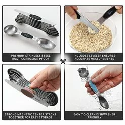 - γEasy to Use and Storeγ Each measuring spoon has a powerful magnet easily use and stack together for easy storage to help prevent losing, strong magnetic do the job to keep these neatly in the drawer, looks tidy and save storage space