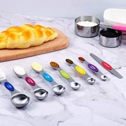 - γHigh qualityγ: Measuring spoons and cups are crafted from food-grade 18/8 stainless steel. They could be used for any food, rust-resistant, will not be polluted or eroded, dishwasher-washable, make your cooking always safe and health, long service life accompanied by your family all the time.