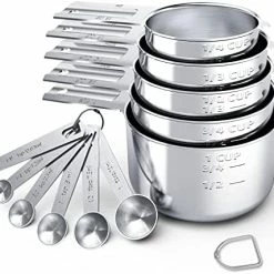 - [Multiple Sizes]: Including 5 Measuring cups (1/8, 1/4, 1/3 , 1/2 , 1 cup), 5 Measuring spoons (1/4, 1/2 , 1 tsp, 1/2, 1 tbsp). Meet All Your Needs On Cooking And Baking.