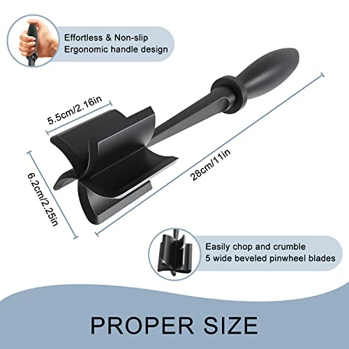 - แฆ ???? ???????????๏ผ5 beveled and curved five-blade pinwheel design makes for easier and quicker chopping compared to other options that only have three or four blades. Meat Chopper works perfectly to break up meat without damaging non stick pans surfaces.