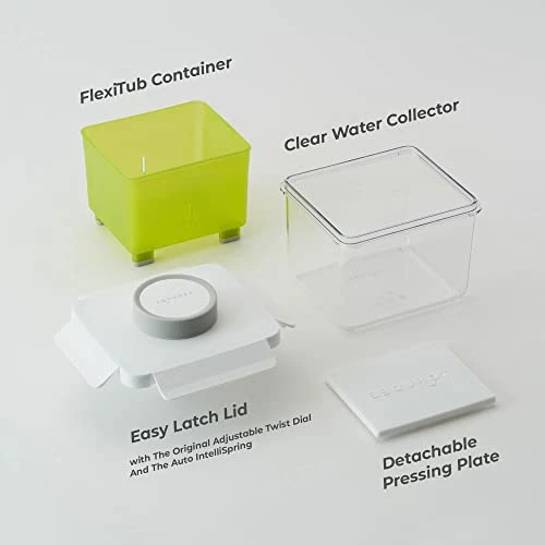 - β EASIER TO USE: This Tofu Tool is known for being an easy to clean tofu press dishwasher safe, with upgraded sturdy features. The lid lock is smooth and quick to clasp (no fiddly bands or clips), with a smooth twist dial, bigger and stronger encased spring and less breakable FlexiTub container.