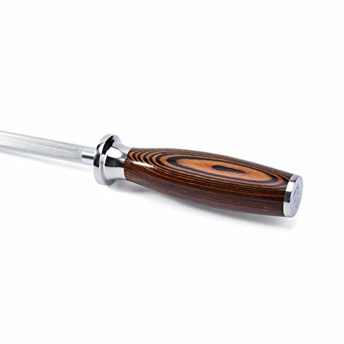 - γWELL DESIGNEDγWith 9β of length, the steel is ideal for most sized knives without getting cumbersome or poking too far out of your knife bag or woodblock. Tiny grooves along the steelβs surface work to bring back and straighten the edge.