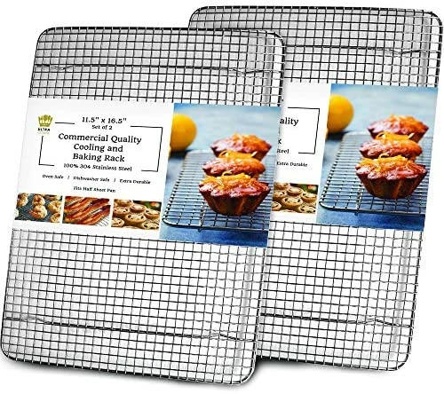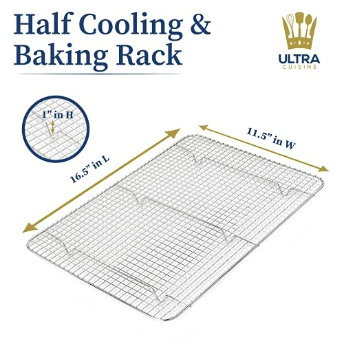 - DISHWASHER-SAFE AND EASY TO CLEAN: Our cooling racks are 100% stainless steel for easy clean up and can be safely washed in the dishwasher so there is no worry of rusting or chrome flaking off into your food; Ultra Cuisine baking and cooling racks offer long-lasting superior quality; inspired baking guaranteed