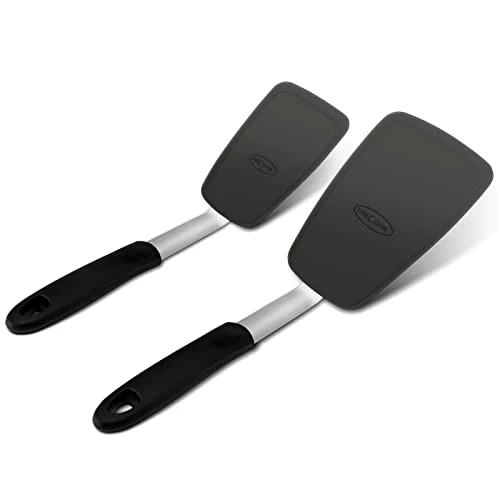 - 2 Pack-including Large and Small spatula. Sturdy, durable construction with a comfortable nonslip handle and silicone head bonded to a flexible stainless-steel core. Ideal for flipping eggs, burgers, crepes and more.