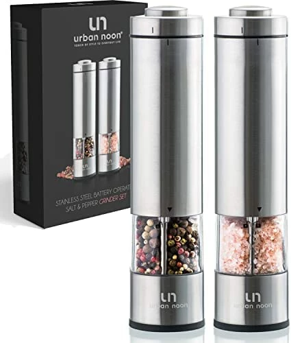 - Improved Design and Construction: Our electric salt and pepper grinders are made of the highest quality stainless steel with improved construction and a ceramic core to ensure smooth and easy grinding with just the push of a button