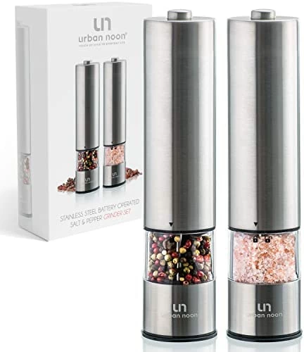 - Convenient One Hand Operation: The high-quality salt and pepper grinder electronic is battery operated and incredibly easy to use with its smart one-hand design so you can season your food with just the push of a button. Each electric pepper grinder needs 4 AA non-rechargeable batteries (not included)