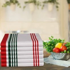 - Set of 6 Kitchen Towels Made from 100% Cotton. These premium quality dish towels are highly absorbent and dry quickly in order to avoid any bacterial build-up