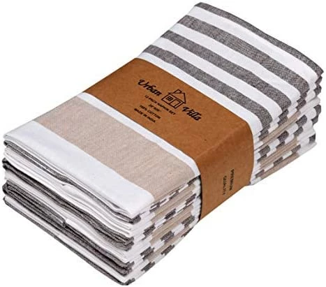 We are aiming for zero waste, and over the last couple of years we wore our old napkins to shreds. These had such great reviews, I decided to go for it. We bought a package of the blossom print and the Eastern collection multi dobby stripes. They are very different fabrics but both have heft and are very large. They take up a lot more room in the napkin basket, so I put half away for when we wear these out! I was worried they would feel TOO large and hefty, but once I used them I really loved them. Worth the real estate on our dinner table.