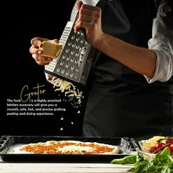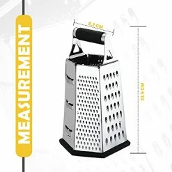 - SIX SIDED BOX GRATER – An all in one shredding tool measuring 3.5 x 9.5 x 4.5 inches. The food grater is a highly practical kitchen accessory will give you a smooth, safe, fast, and precise grating, peeling and slicing experience. You can efficiently prepare your meals without any extra hassle.
