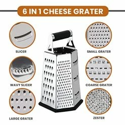 - USER-FRIENDLY DESIGN β Constructed from high-grade stainless steel, our cheese grader has a unique hexagonal structure with sharp blades and a non-slip rubber base. It comes with a single rubber handle that fits comfortably in your hand and maintains your grip while grating.