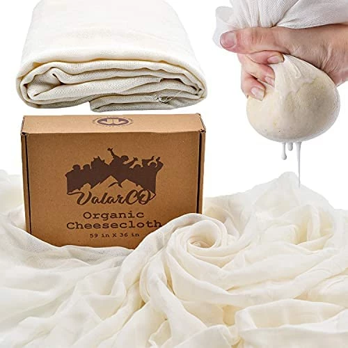 Coupon ❤️ ValarCO Organic Cheesecloth Nut Milk Bag Strainer 2-Pack, GOTS Certified Cheese Cloths For Straining Food, Yogurt, Juice, Cold Brew Coffee & Tea Filter – Reusable Butter Muslin Greek Yogurt Straine ❤️