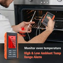 - ใMonitoring Food & High / Low Ambient Temp Range SimultaneouslyใMeat smoking thermometer not only allows you to set your own cooking temperatures, but also can set HI/LOW temp range for your grill or smoker to know when to add more fuel! oven safe meat thermometer will flash and beep to remind you if the temperature ever goes out your set range