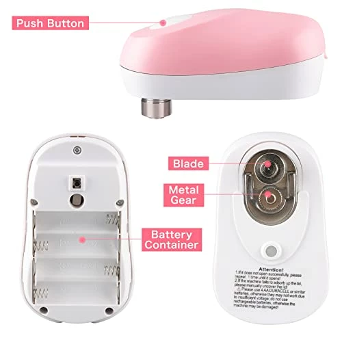 - ? Strong Motor – Powered by 4 AA batteries (not included, not suitable for rechargeable batteries), the power is twice that of a normal can opener, freeing your hands during any can opening process. The battery can be easily replaced by simply flipping the groove on the rear. (recommended to use high quality alkaline batteries > 1.5V)