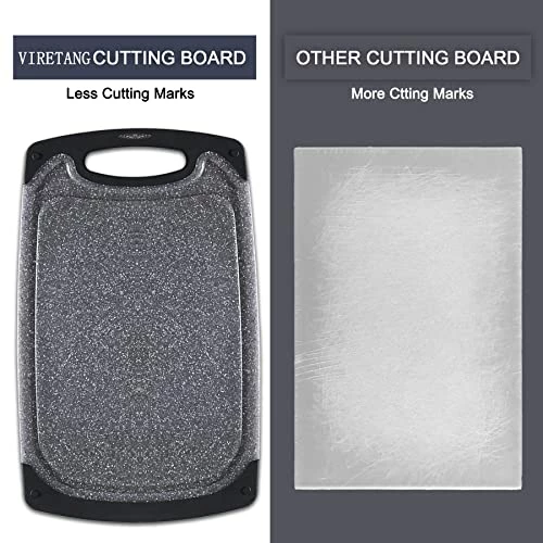- Reversible and Knife-Friendly Cutting Boards: Double sided design, one side with juice grooves for catching juices, another side has more space for cutting. both surfaces are strong and knives friendly.