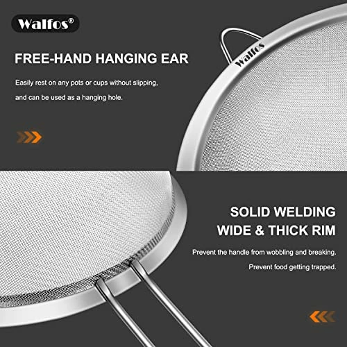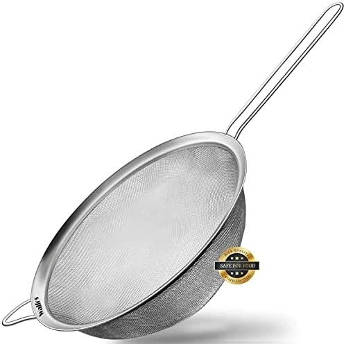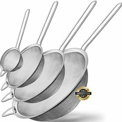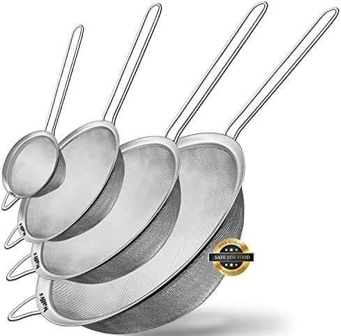 - γNO WASTED FOODγThe extra fine mesh strainers nets easily catch and sift, strain or drain the smallest ingredients. The sealed steel rims also prevent food from getting trapped between the mesh and the rim.