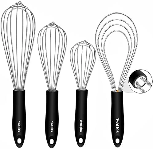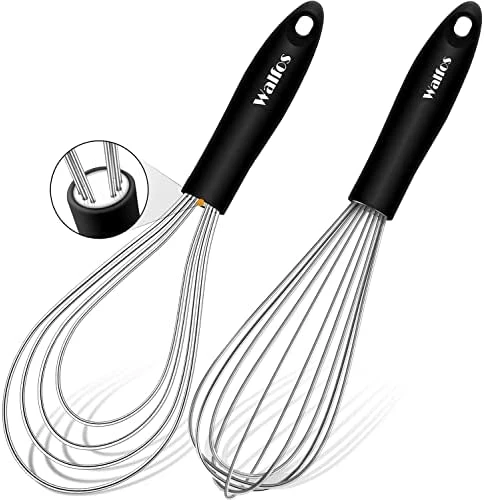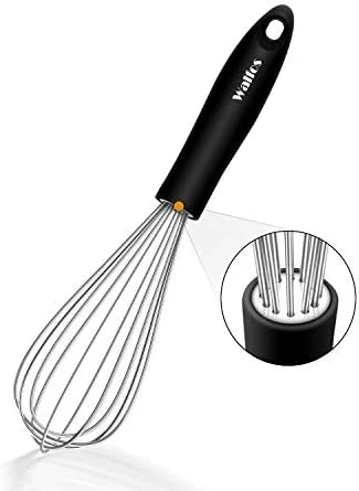 - β EASY TO CLEAN & HANDY HOOK- Walfos mini wire whisk design as zero residue, hand wash easily and dishwasher safe. Every whisk bottom of handle has a hook, convenient for you to dry them while finish the washing.