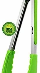 - βNON STICK SILICONE TIP, Tongs for Cooking won’t MELT, RUST OR FLAKE-The tip is made of food-grade and BPA free silicone, which is safety-tested, heat resistant up to 480Β°F and will never rust. Kitchen tongs with non-stick silicone tips protect your cookware from damage, easy to clean and dishwasher safe.Great for Salad Cooking,