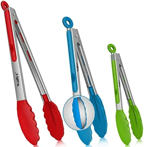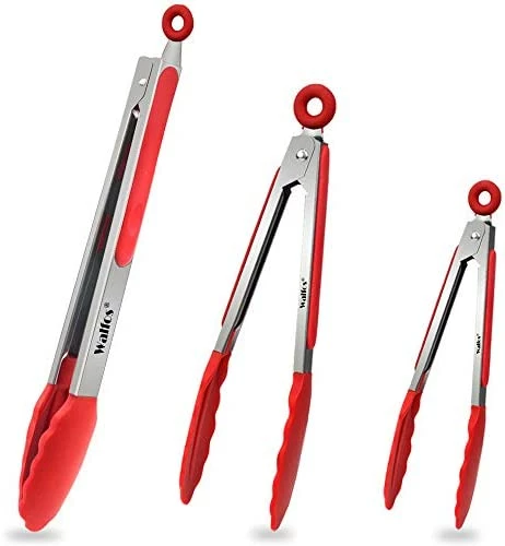 I highly recommend these tongs, and this 3-pack is a great value. I have purchased several of these Walfos tongs, mainly because their size is optimal for me, neither too big nor too small, and I use them much more than any other tongs I have. They are sturdy and the open/close mechanism works well. The actual tong parts are secured by them being inserted into the handles and pinched tight, and the pair that I bought several years ago is still securely holding the tongs part. I mention this because I had (and discarded) other pairs where the tongs parts were slid over the ends, essentially just covering the ends with silicone pieces that become loose and fall off, all the while collecting bacteria as dirty water slides inside the pieces.