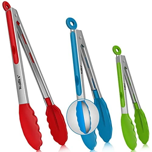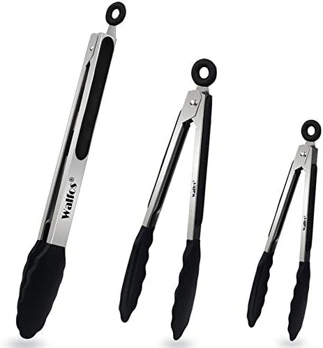 - βLOCKING MECHANISM & PULL-RING TECHNOLOGY -WALFOS ring-pull technology will keep your tongs from opening and closing accidentally which will allow you to facilitate better control while using them. And can be conveniently dried and stored.The set of 3 sizes Cooking Tongs- Small 7 inch, Medium 9″, Large 12″ is perfect for all your needs.