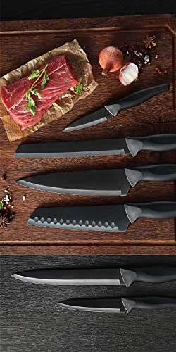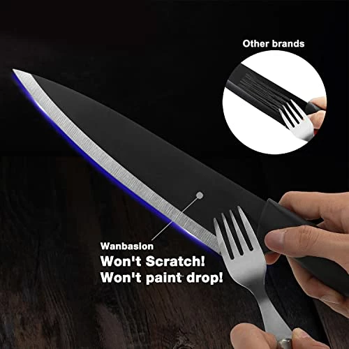 - Kitchen knife will not scratch – The natural black titanium metal is used on the blade, instead of black spray paint. There will be no problems such as dye falling off, food safety, and aesthetic problem caused by scratching on the knife’s surface.