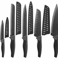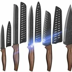 - kitchen knife set not easy to rust – Double-layer protection of high-quality stainless steel and titanium corrosion-resistant coating, with independent knife sleeve to ensure that the kitchen knife set is difficult to rust.