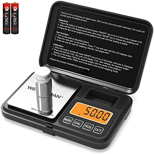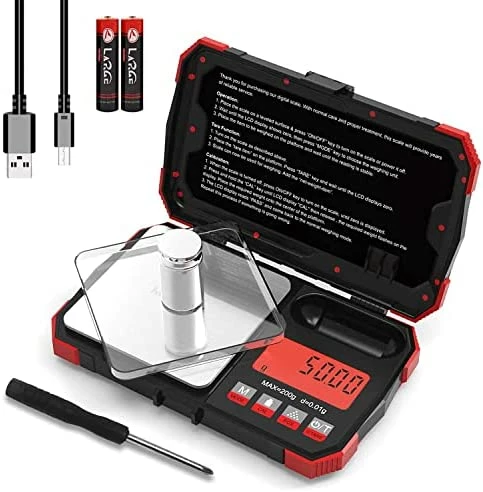 - Capacity and Readability—This pocket scale weighs up to 200g and graduation 0.01g, minimum load 0.05g. Dual powered: runs on AAA batteries or USB port ( any USB charging port on an adapter or portable charger )
