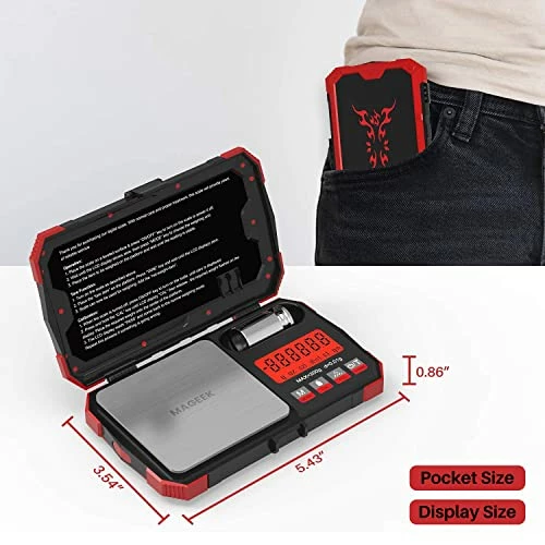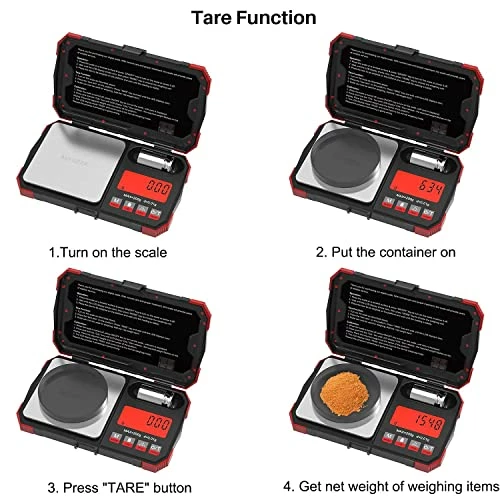 - Function—This herb scale designed with red flame pattern, so beautiful and eye-catching scale to meet different demands. High precision sensor make sure you get accurate weighing result. Tare function can help you get net weight in the container