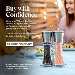 - Included Stand: Any master chef knows you need a stand for your spices. Our salt and pepper set includes a stainless steel stand to keep your kitchen clean and professional.