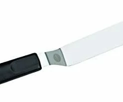 - DURABILITY: The Wilton icing and cake spatula has an ergonomic black handle that fits comfortably in the hand and the sturdy, stainless-steel blade helps you get nice, smooth edges and designs