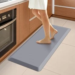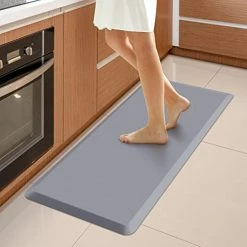 Much easier to cook for a long time now that we have this over the ceramic tile. Got 2 in the set so the other one is in front the sink for washing dishes. Much easier to clean than the thin rug we had there before & my feet don’t hurt after a couple of hours of food prep, cooking on the stove top, cleaning up & washing dishes.