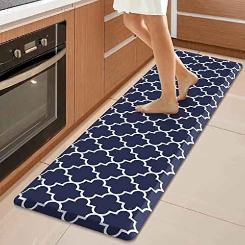 - β²γNO TRIPPING & NON-SLIPγThe non skid washable kitchen mats and rugs are designed with advanced beveled edge and non-slip backing helpful to protect you from slippage and tripping. Padded kitchen floor mats are cushioned enough to bring comfortable support but not too thick to be a tripping hazard. Nonslip PVC Bottom is manufactured so that they do not move around like other mats while a slight texture on the top makes them slip resistant.