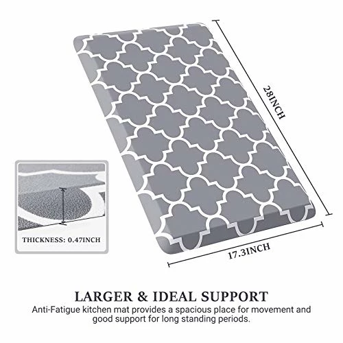 - β²γVERSATILITYγThe memory foam kitchen floor mats are measured as 28β (L) x 17.3β (W) x0.47β(H) and provide extra large areas for standing in laundry room, kitchen, office, farmhouse,in front of sink or any other high-traffic indoor or outdoor space. [WARNING!!] Open rug fully and place on even, flat, dry floor. Water under rug may result in slippage. Rug must be placed on dry surface during use.