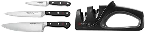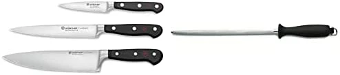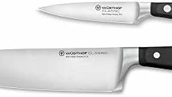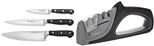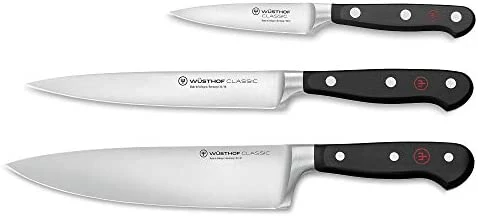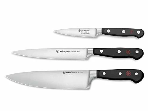 - WÜSTHOF KNIFE SET – The Three Piece Cook’s Set includes 3.5″ Paring Knife, 6″ Utility Knife and 8″ Cook’s Knife