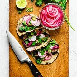 I highly recommend this set if you’re going to cook often. It’s a good trio of knives to keep in your kitchen. It was the right weight and balance for my hands. I feel like a professional chef when I’m chopping as I like the cadence of the knife and the stuff I’m chopping. I have a Wusthof utility knife I inherited from my Mom’s kitchen. When it was time to get more knives, I couldn’t think of buying any other brand.