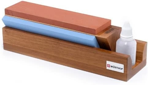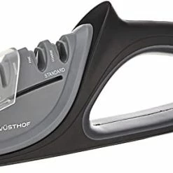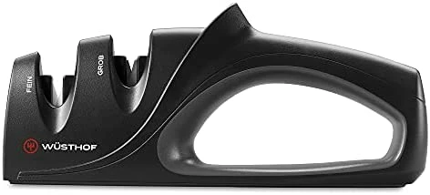 We send our French knives out for professional sharpening twice a year. This Wusthoff keeps the blades tuned up between trips to the professional. Easy to use and it fits nicely in a kitchen drawer.