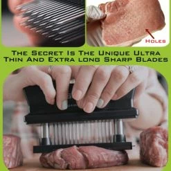 - CRAVE THE BUTTERY FLAVOR PRIME CUTS DELIVER, WITHOUT THE STEEP COST? 48 Needle Meat Tenderizer Blades Tenderize Tough Connective Tissues So They Render Like The Fat That Makes Pricier Cuts So Mouthwatering – Resulting In Juicy, Delectable Meat With Every Bite. Itβs Easy To Use, Ergonomic, Arthritis Friendly And Requires No Force Making It The Best Meat Tenderizer Tool On The Market