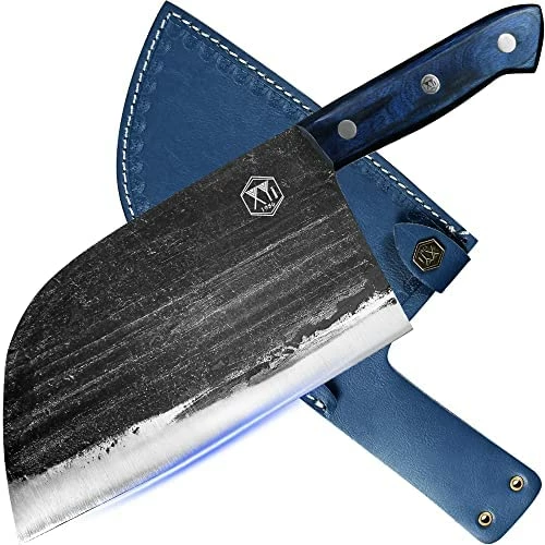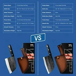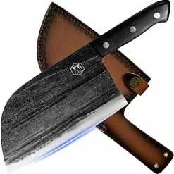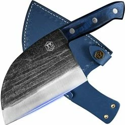 For god’s sake, do not listen to some of these reviews. I say this due to the fact that some people do not understand how to take care of the metal these are made out of. They are NOT stainless steel. With saying this if you wash and put them away wet, THEY WILL rust. You must dry them off and oil them before putting away. Second, understand that these are NOT cleavers like the title says. You will not find a knife that chops through bone and keep its blade without spending good money.Now with that being said, I have had a few of these knives for a couple of months now and love them. I use them every day for cutting everything from meat to veggies for dinner and every meal on the weekends. I have yet had to sharpen them or redo the edge because of dents or knicks. They are made from a good heavy solid metal that will put your other knives to shame. The cases they come with do have a loop for you to attach to your belt, which is really handy while camping and not wanting to put it down. Just wipe both sides off and belt it. The oil that I use is avocado oil when oiling and putting it away. That way it’s always ready to use when I pull it out of the sheath. For the price you really can’t go wrong with this company’s knives. I have now ordered a second one that is strictly for camping and more knives for camping and home. So, no matter what kind of meat or veggies you’re cutting up and no matter how thin you need them, these knives would be a great choice.