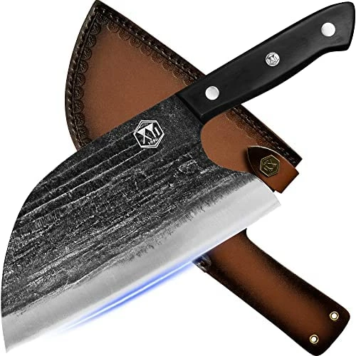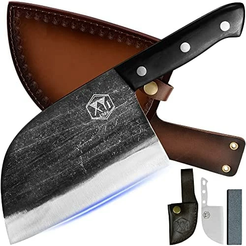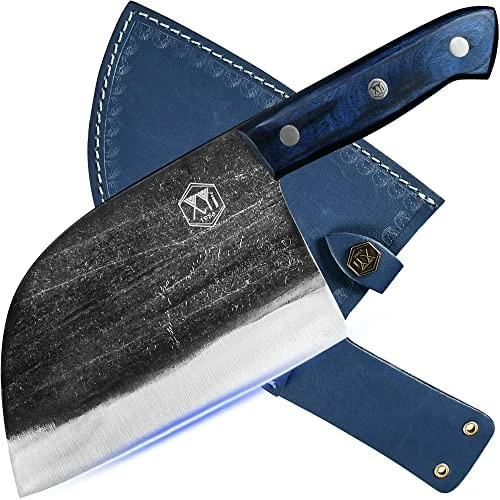 - γMulti-purpose&High Quality CleaverγXYJ knives are forged by high-manganese steel. Designed with a V-shaped fine processing blade and ergonomic full tang handle, they can provide a comfortable grip in your hand and are suited for cutting meat, fish, vegetable, fruits or any other food other than bones.