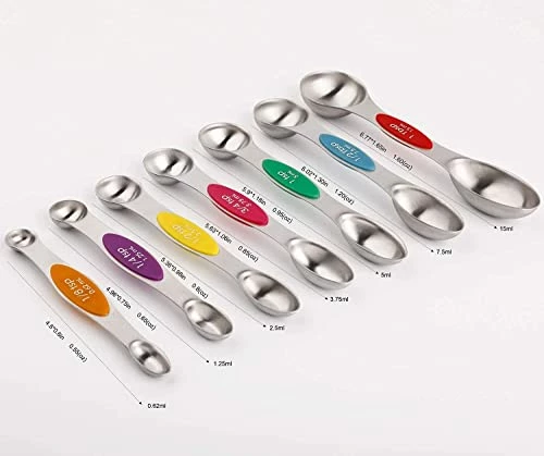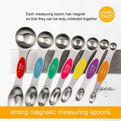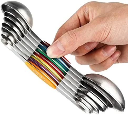 - MULTIPURPOSE: These magnetic stainless measuring spoons are great for measuring spice, sugar, salt, oil, coffee, wheat etc. Make your cooking and baking easier and more fun