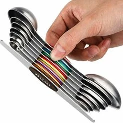 - γMagnetic for easy use and storageγ-Each piece of this measuring spoon set has an enhanced magnetic center for easy stacking together in drawers, you don’t need to take them out of the ring and put them back, just touch The original position can be restored. These measuring spoons are easy to store and fasten together, and the strong magnet keeps these items neatly in the drawer.