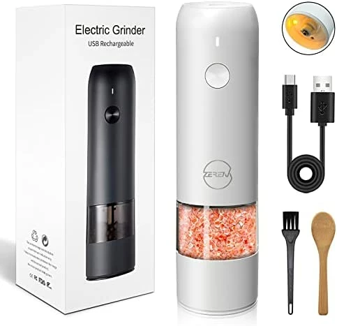 - USB Rechargeable Pepper Grinder – No extra battery needed, use type-c cable for fast charging. Fully charged in just 1 hour. Charging for 5 minutes, this electric salt and pepper grinder set can grind 10g pepper, type-c cable is included.