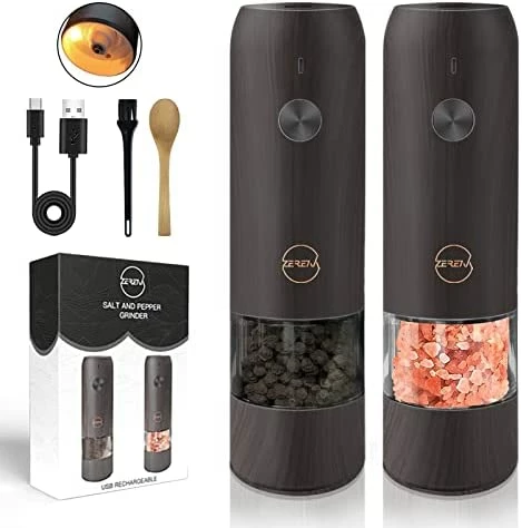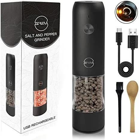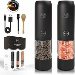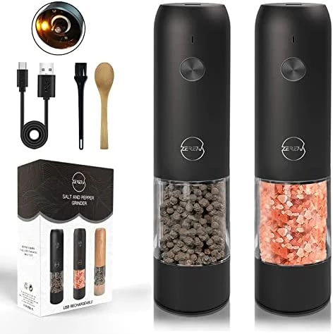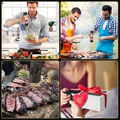 - Warm LED Light – Not cheap-looking white light or unclear blue light anymore, our automatic salt and pepper grinder set with warm LED light is bright and gentle, adds a warm and romantic atmosphere for your family or loved ones. The light will automatically turn on during. Which helps to prevent the food from being over-seasoned.