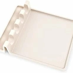 I’m not sure why it took me so long to buy one of these; I was certainly tired of getting liquids on the counter every time I needed to set a spoon down. This item holds four spoons/forks/knives, so long as they don’t have a thick handle. It’s very easy to clean and could probably even go in the dishwasher. My one complaint, for which I deducted a star, is that the “back end,” on which the neck and handle of the spoon rests, is rather short, so, if you’ve been working with a deep sauce, you could still get a bit on the counter. Nevertheless, the price is good, and I’m glad I bought it. Recommended.