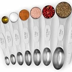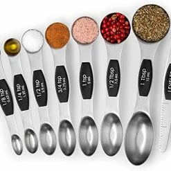 - Accurate Magnetic Measuring Spoon Set: Comes with seven double-headed spoons and a leveler. Labeled with large and clear US metric measurement markings that wonβt fade or rip off. Sizes vary from: 1/8 tsp, 1/4 tsp, 1/2 tsp, 3/4 tsp, 1 tsp, 1/2 Tbsp, and 1 Tbsp plus 1 leveler.