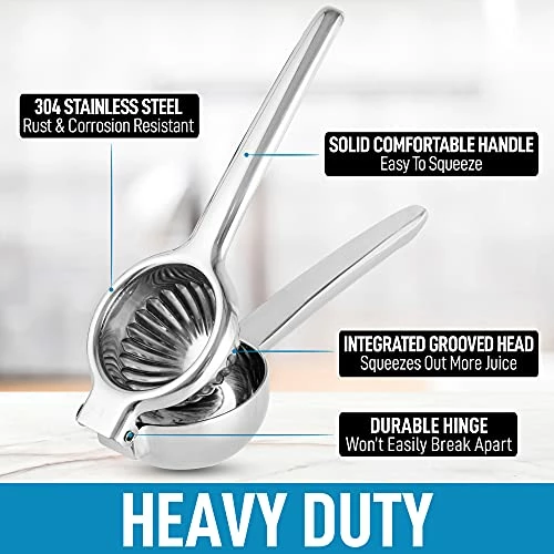 - Made With High Quality Stainless Steel: This easy-to-use and easy-to-store lemon squeezer is built like a tank. It will last literally a lifetime, if anything happens to it we WILL cover it, just reach out to our USA based customer service team. No more bulky, hard-to-clean juicers crowding the decor of your home bar or kitchen, this citrus press has you covered. Whether you’re a chef or simply want a pampered squeeze, you can be drinking lemonade in a just seconds.