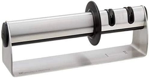 Donβt expect those razor sharp edges, but it does an OK job at sharpening. Unit is a little large on the counter and the action of the stones is a little loud and clonky. Iβll continue my search for the ideal sharpener.