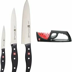 The Zwilling knife sharpner does a good job maintaining the knife’s edge. It sharpens it if it’s dull. Only thing is it cannot get it sharp to its original sharpness. You would need to use another device.