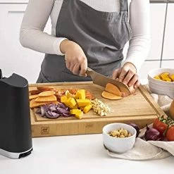 I often make sweet potato treats for our blue-brindle Cane Corso (Italian Mastiff), named Dante. After buying a one pound package at the vet for $15.00 I figured that it would be much more reasonable to buy the sweet potatoes myself (for between 69-99 cents per pound) and dehydrate them at home. So I invested in a $60.00 Nesco dehydrator and started producing sweet potato treats. The only problem I encountered was the difficulty of cutting the potatoes to the proper width without removing any of my fingers. Normal (cheap) chef knives dulled up immediately, causing me to really bear down on the knife and upping the odds of a really bad cut. So I started searching for a knife that would make the job of cutting hard vegetables much easier and therefore safer.My choice was the Zwilling J. A. Henckels Twin Four Stars Series 7-inch Santoku Knife with the hollow edge. That’s kind of a mouthful, but I found a great deal on the knife with a cutting board for only $49.95. This knife out of the box was so sharp that it even looked dangerous. It was easy to shave hair off my arm and it sliced through a sheet of paper like it wasn’t even there. Trying to feel the sharpness of the blade with your finger was a recipe for disaster. Obviously I had found the right knife. After using it on probably 100 pounds of sweet potatoes, the edge wasn’t quite as sharp as it was when brand new. It still could shave hair off my arms and it could still slice into a sheet of paper, but it took a little more effort and more careful placement.So obviously I needed the proper sharpener to bring my knife back to the superior cutting tool it originally was. When I returned to the knife’s product page I noticed that this Twin Sharp Duo Knife sharpener was paired with my Santoku knife for a potential purchase. Knowing that different knives have different cutting angles, I wanted to make sure that I was using an appropriate sharpener and it wouldn’t ruin my knife. When I read the instruction manual (I guess that I’m still old school) it clearly said that “This knife sharpener may only be used for uncoated knives with a straight edge.” At the end of the manual it says “The pre-set of the sharpening wheels is for household knives only. To sharpen Oriental knives, a different angle may be necessary.”Since the Santoku knife I have is an Oriental style made by a German company, I double checked the product page and saw a comment from a Zwilling representative who said that the angle on this sharpener does not match the angle used on their Santoku knives. Just to be sure, I pulled my knife through the “I” slot with no resistance. Then I pulled it through the fine ( II ) slot and felt and heard a lot of chattering. After pulling it through I tested it on my arm and on another sheet of paper. This demonstrated that the blade had been sharpened BUT the knife’s edge was now ragged looking and had obviously shed some of the blade’s steel. Continued use of this sharpener would no doubt eventually ruin my expensive blade.I did use it to sharpen some old (and cheap) Chicago Cutlery and Sabatier knives that had dulled up considerably. It did the job and brought the edges back to reasonable sharpness but not to a degree that I expected.
